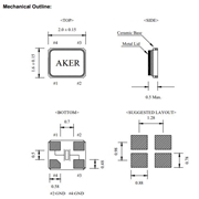 | AKER晶振原廠編號 | 品牌供應商 | 型號 | 頻率 | 頻率穩定性 | 頻率容差 | 負載電容 |