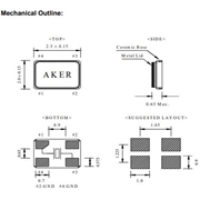 | AKER晶振原廠編號 | 品牌供應商 | 型號 | 頻率 | 頻率穩定性 | 頻率容差 | 負載電容 |
