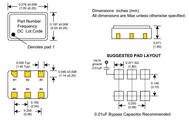 Frequency 頻率 200MHz Termination  腳位 6 pads