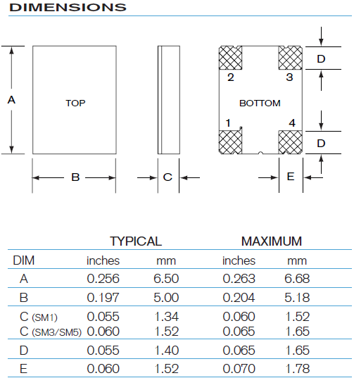 Frequency 頻率 32.768k Termination  腳位 4 pads