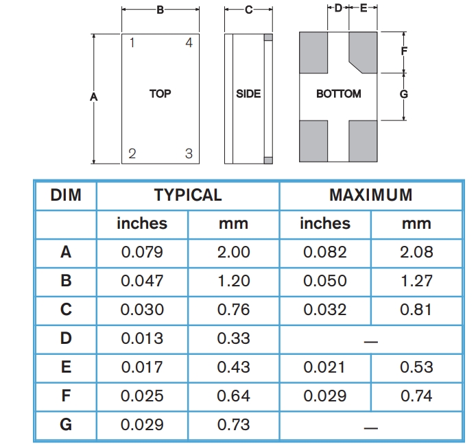 Size / Dimension 尺寸 2012mm貼片晶振 最小包裝數 MPQ : 3000