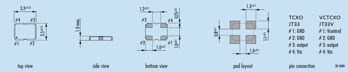 Type類型 VC-TCXO晶振 PackageHeight高度 1.0MM