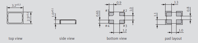 Size/Dimension尺寸 3.20mm x 2.50mm 最小包裝數(shù)MPQ: 3000