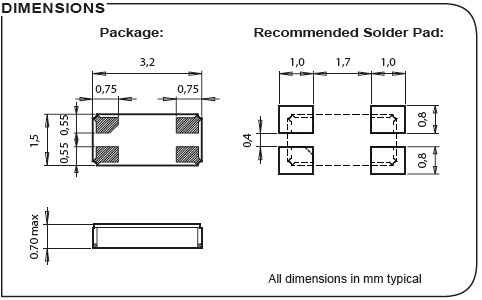 Frequency頻率 32.768kHz Termination  腳位 4-pad
