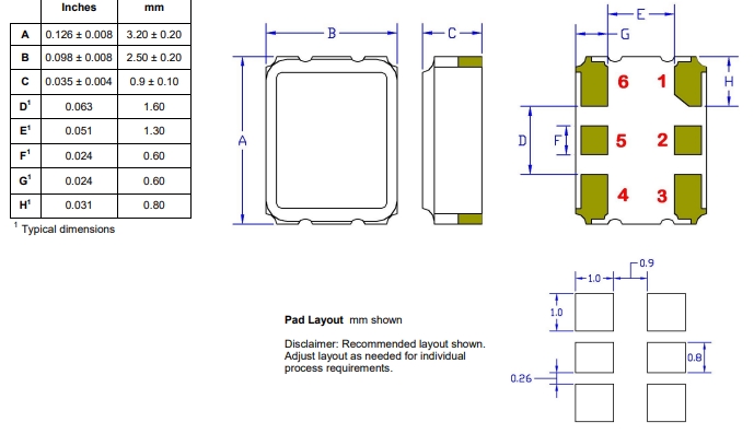 | 輸出方式 Output: | PECL差分輸出 | PackageType 封裝類型 | 6-smd |