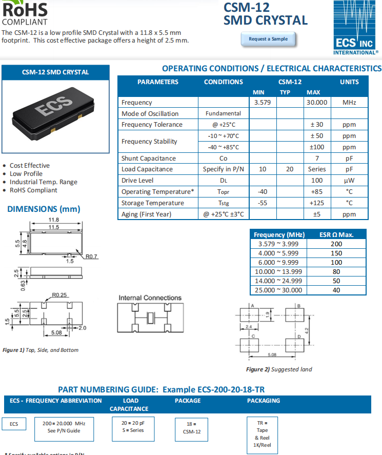| ECS-200-18-18-TR | ECS晶振 | CSM-12 | 20MHz | -40°C ~ 85°C |