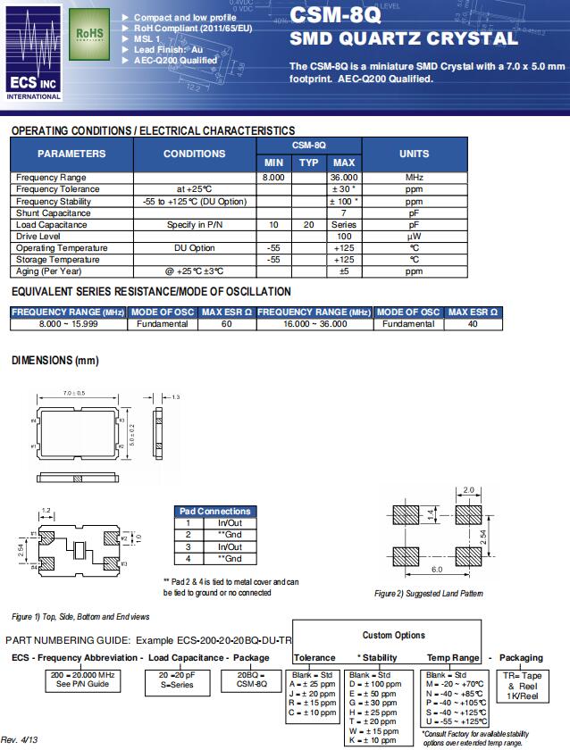 | ECS-80-18-20BQ-DS | CSM-8Q | 8MHz | ±100ppm | ±30ppm | 18pF | -40°C ~ 125°C |