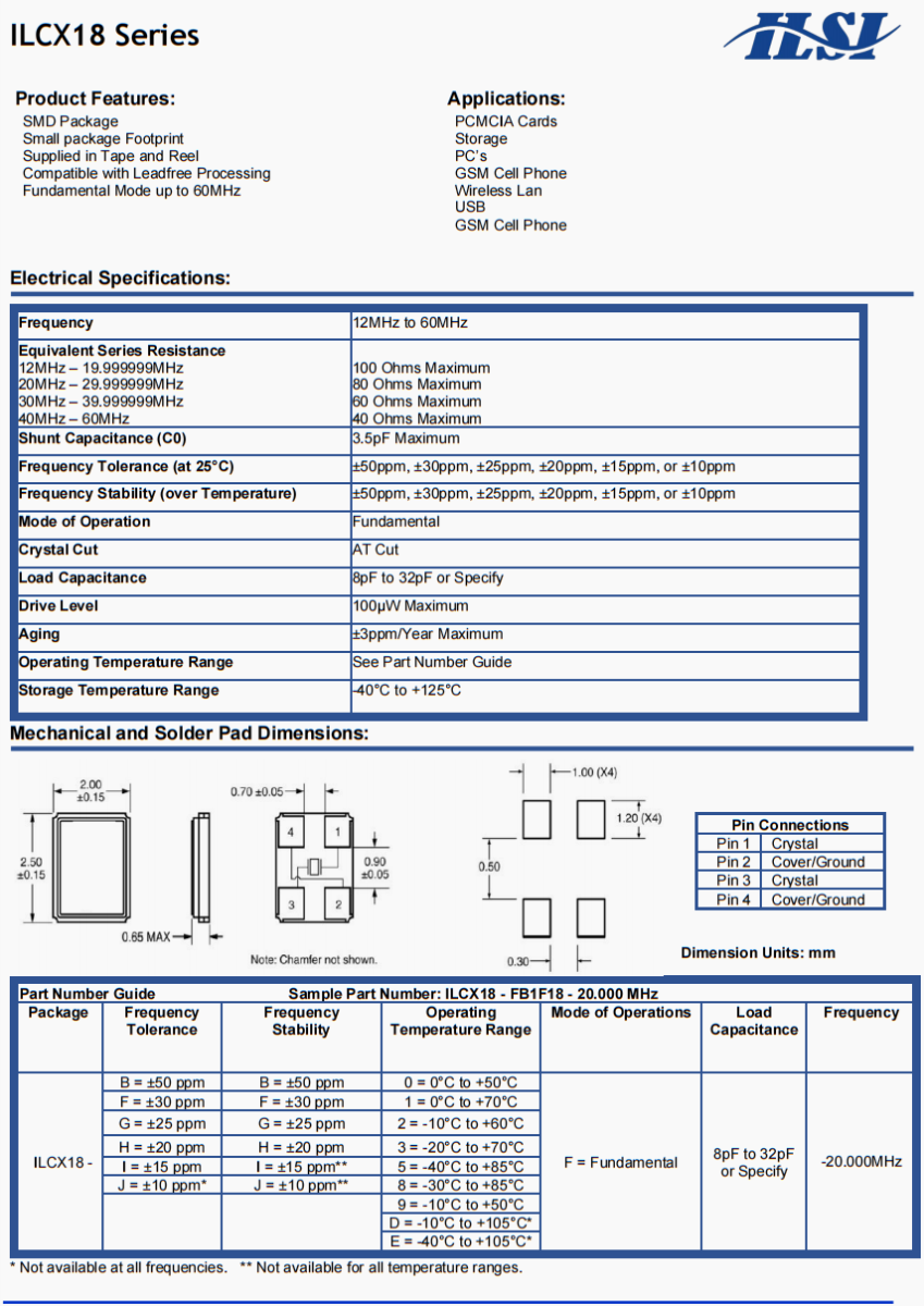 | ILCX18-FF5F10-20.000MHZ | ILSI | ILCX18 | 20 MHz | ±30ppm | ±30ppm | 10pF |