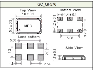 Size / Dimension 尺寸 7 x 5 mm 最小包裝數 MPQ : 1000