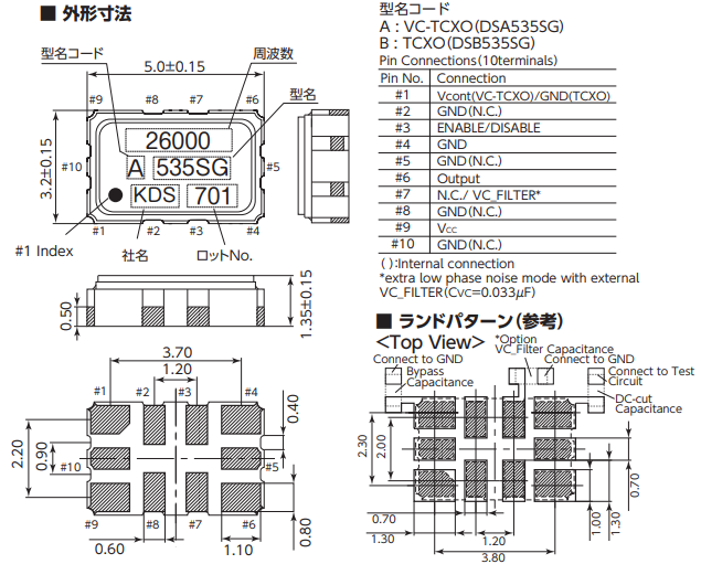 KDS晶振,DSB535SG晶振,5032晶振的不正確安裝會導致故障以及崩潰,因此安裝時,請檢查安裝方向是否正確。