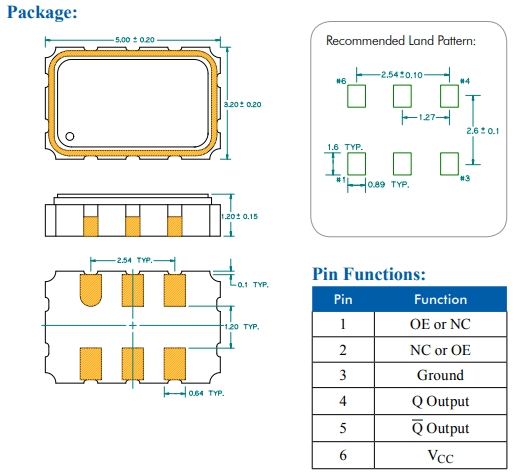 輸出方式 Output: LVPECL PackageType  封裝類型 6-SMD