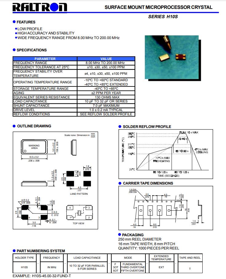 | H10S-14.7456-16-1020-TR | H10S | 14.7456MHz | 6.0 x 3.5mm | ± 10 ppm | ± 20 ppm | 16 pF |
