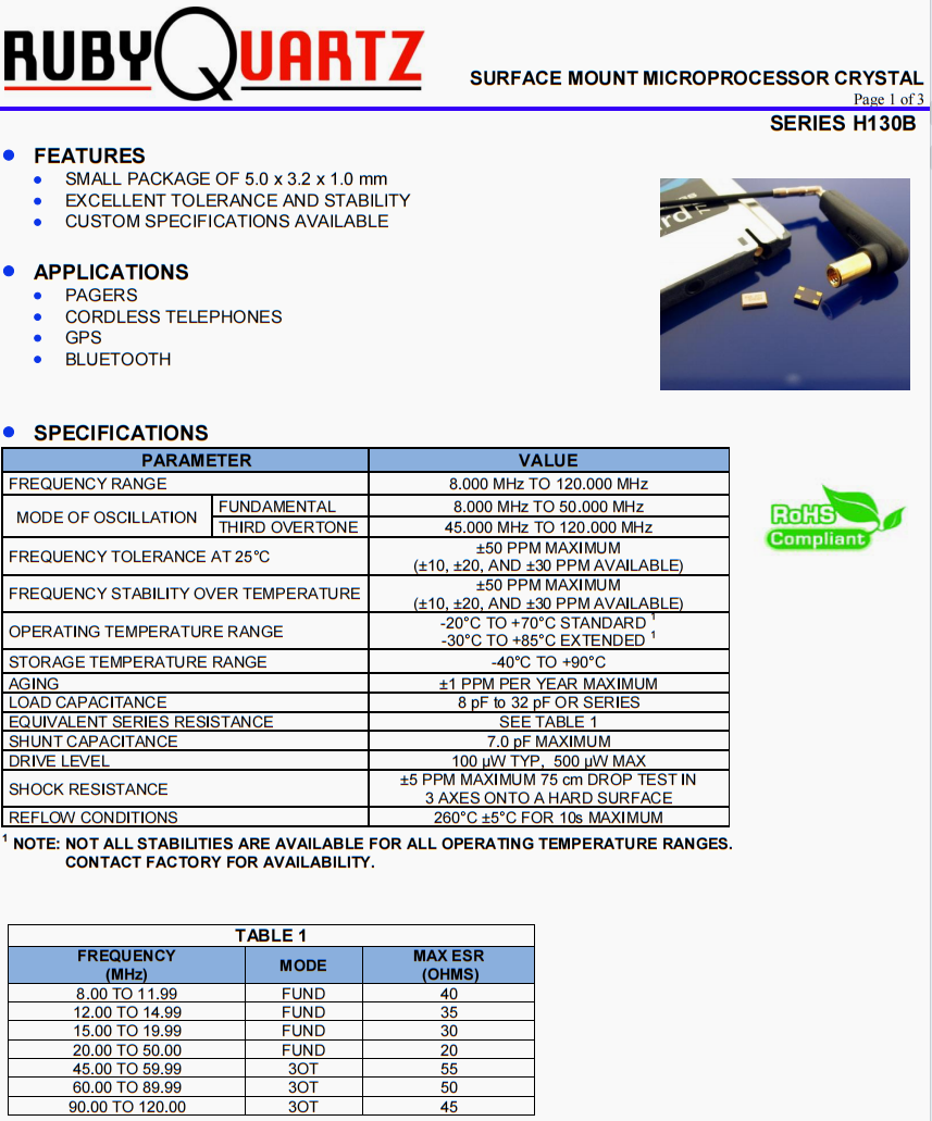H130B-24.000-18-TR晶振,北美盧柏高精度晶體,無人機數據傳輸晶振,美國rubyquartz晶振公司,高精度晶振,無源晶振,貼片晶振,高精度晶振,6G通訊設備晶振,無線傳輸晶振,局域網晶振,5032晶振,高品質晶振,SMD晶振,石英晶振,小體積晶振,低損耗晶振 ,北斗衛星定位模塊晶振,6G無線網晶振,高精度晶振。特點:5.0 x 3.2 x 1.0 mm的小封裝,良好的公差和穩定性,可定制規格,應用:尋呼機,無繩電話,GPS,藍牙