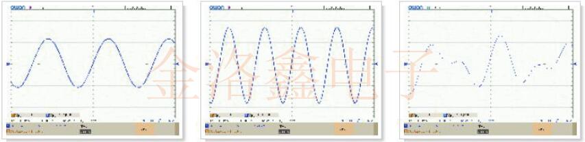 這是該電路的三種行為狀態(tài)的三個示波器屏幕截圖.首先,在最低的微調(diào)電阻值(最高增益)下,5.9904MHz晶體振蕩.接下來,隨著增益降低,5.9904MHz晶體停止工作,而3.579MHz晶體開始工作.在這兩種情況下,都具有相當(dāng)大的振幅和看起來清晰的正弦波.在甚至更低的增益(更高的源電阻)下,示波器波形都被弄亂了,示波器的同步不再鎖定.可以推測這是因為兩個晶體都在振蕩,而我們看到的波形是3.578MHz和5.9904MHz正弦波的總和.