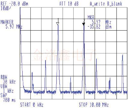 下面的兩個圖表顯示了相同的信息,但是一個圖表在50歐姆負(fù)載上使用了以毫伏為單位的線性垂直刻度,另一圖表以dBm為單位(對于50歐姆阻抗負(fù)載).RED和BLUE線同時出現(xiàn)的3K到10K范圍是兩個晶體同時振蕩的地方.