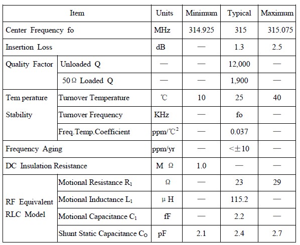 聲表晶振,F11-315M濾波器,聲表面諧振器