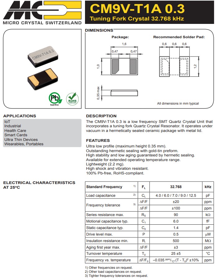 | CC1V-T1A-32.768kHz-9pF-30PPM-TC-QC | Micro Crystal | 晶體 32.768 kHz 9.0 pF +/-30 PPM -55/+125C |