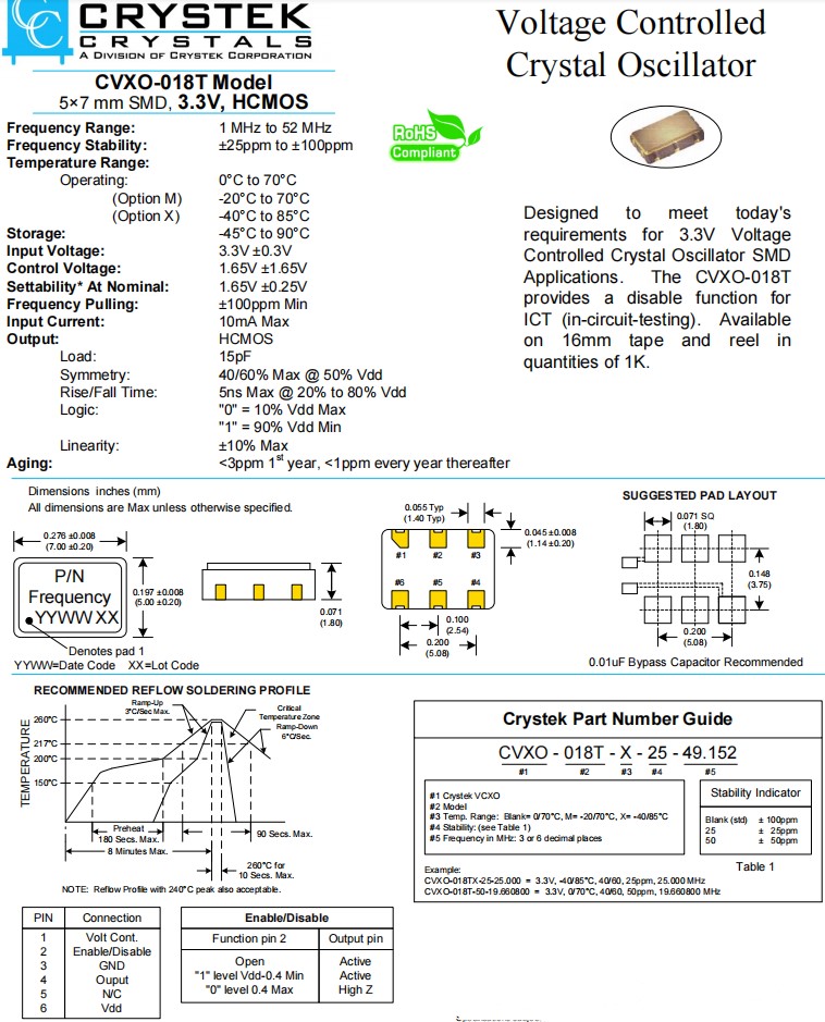 | CVXO-018TX-50-20 | Crystek晶振 | CVXO-018T | VCXO | 20MHz | ±50ppm | -40°C ~ 85°C |