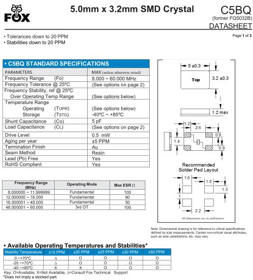 | FQ5032B-20.000 | FOX無(wú)源晶振 | C5BQ | MHz Crystal | 20MHz | ±30ppm |