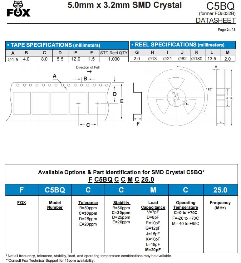 | FQ5032B-25.000 | FOX無(wú)源晶振 | C5BQ | MHz Crystal | 25MHz | ±30ppm |
