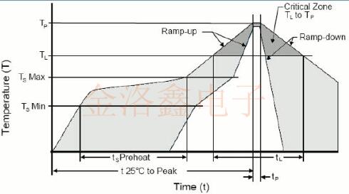 預熱 最低溫度(Ts分鐘) 溫度典型值(Ts典型值) 最高溫度(Ts最大值) 時間(Ts) |