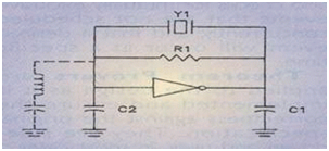晶體穩頻的多諧振蕩器:為了得到頻率比較穩定的信號,需要晶體穩頻形式有多種,但單反相器方式最為簡單,也最常用,許多MCU都用這種形式