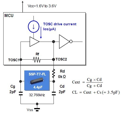 下面是精工貼片晶振SSP-T7-F的負載電容求得值。計算公式為:晶振的負載電容=[(Cd*Cg)/(Cd+Cg)]+Cic+△C式中Cd,Cg為分別接在晶振的兩個腳上和對地的電容,Cic(集成電路內部電容)+△C(PCB上電容)一般為3至5pf。