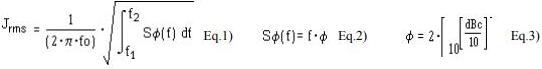 有很多論文描述了如何根據相位噪聲來推導表達RMS抖動的方程式.我們將向您展示的是為MicrosoftExcel電子表格開發的實用應用程序.任何對分析相位噪聲數據感興趣的工程師都可以使用此工具.我們從建立良好的方程式開始,以相位噪聲為單位,以秒為單位計算RMS抖動.