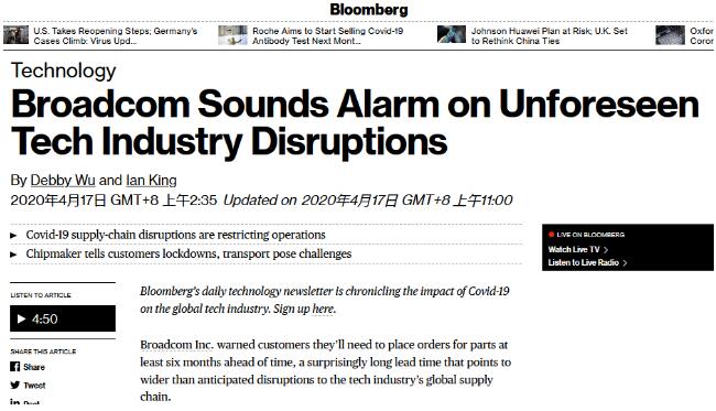 近日,美國一家大型芯片制造品牌博通公司,其銷售副總發(fā)了一封郵件,大致內(nèi)容是由于馬來西亞、泰國、新加坡和菲律賓的封鎖措施正使博通的業(yè)務運營遭受嚴格限制甚至被關(guān)閉,這些封鎖措施將原本60天~90天的正常交貨時間硬生生延長到至少180天,Mistry建議客戶至少提前26周下單,超長的交貨周期表明疫情對芯片行業(yè)全球供應鏈的破壞要比預期嚴重.消息一出短時間內(nèi)便擴散到國內(nèi)市場,引起不少業(yè)界人士的擔憂,交期延長了一半,對于任何工廠來說都是耗不起的時間成本. 雖然這只是美國芯片制造商發(fā)的一封郵件,但是也側(cè)面反應了美國本土的形勢嚴峻,受影響的絕對不只是芯片產(chǎn)業(yè),而且一家這么大的企業(yè)都因為疫情影響營業(yè),那么其他中小型企業(yè)的生存環(huán)境只會更加困難.據(jù)了解,博通是蘋果、三星手機關(guān)鍵零部件供應商之一.在中國經(jīng)濟復蘇之際,東南亞等關(guān)鍵地區(qū)的封鎖和隔離令對從任天堂游戲機到智能手機等各種產(chǎn)品的供應產(chǎn)生了未知的影響,而這封來自博通副總的郵件又加重了業(yè)界因疫情對半導體,晶振供貨的擔心.